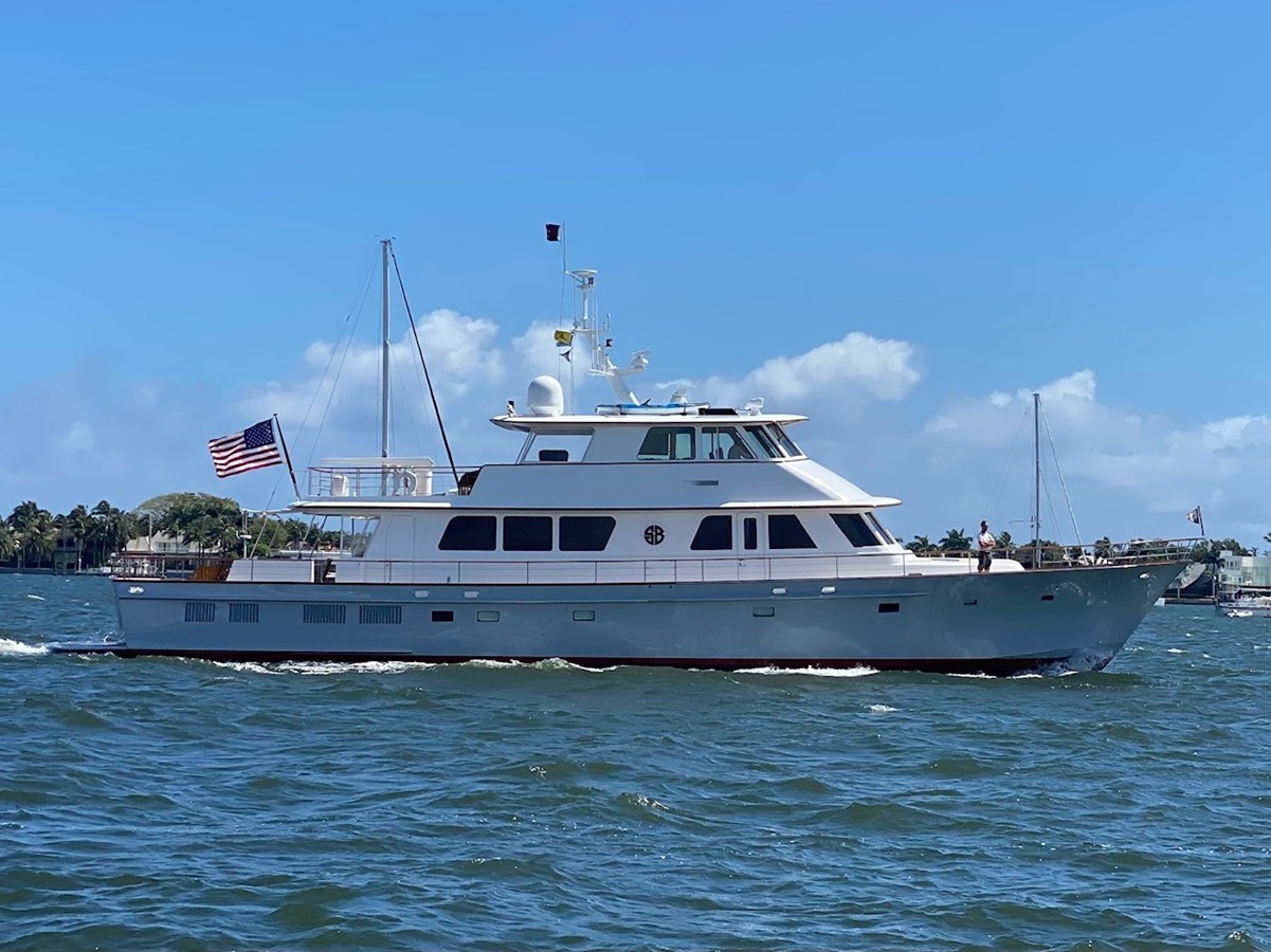 Yacht for sale is a 2003 NEW ENGLAND BOATWORKS 96' "SEA BOLD " Enclosed Raised Pilothouse Motor Yacht in Fort Pierce, Florida, USA. SEA BOLD, a custom-built motor yacht reminiscent of C. Raymond Hunt's classic designs, was crafted in 2003 by New England Boatworks in Rhode Island. This unique vessel boasts a timeless elegance paired with high functionality, perfect for yachting enthusiasts seeking luxury and performance. Constructed with Kevlar and Carbon Fiber composite, SEA BOLD offers exceptional strength and seakeeping abilities with a deep vee hull design. Following a refit in 2019-2020, she remains in immaculate condition under the care of a dedicated captain/engineer and steward. With a fast-cruising speed of 22 knots and top speed of 25 knots, SEA BOLD offers both efficiency and performance for an enjoyable cruising experience.