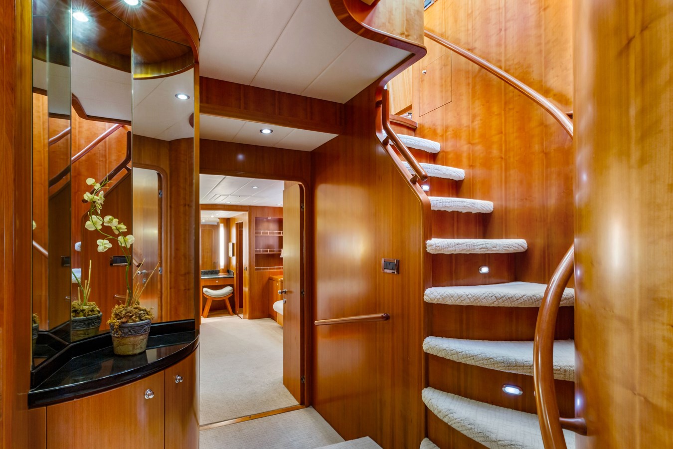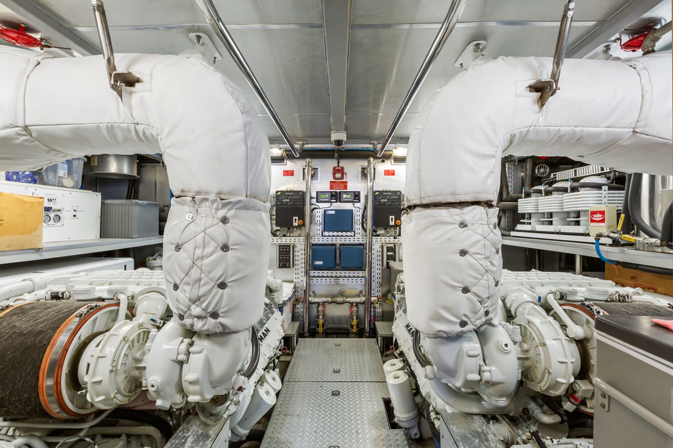 REVERIE is a one-of-a-kind custom 98’ Horizon Tri-Deck, offered for the first time by her original owner, who uniquely served as the engineer of record for Horizon during her construction. She is exceptionally well equipped, featuring an ASEA shore power converter that allows compatibility with any power source, a large inverter bank for quiet nights at anchor, bow and stern thrusters, a diesel heater, passarelle, and two davits. With low engine hours (under 1,000 on the mains), REVERIE is an excellent platform for cruising in both warm and cold climates and represents a remarkable opportunity in this size range.
