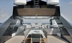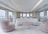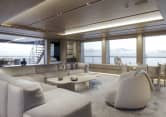 The second hull of the Amels 60 Limited Editions, ENTOURAGE features an exterior design by Espen Oeino and a serene interior by Canadian-based design studio Burdifilek. ENTOURAGE was designed to offer the ultimate onboard experience with spacious areas for entertainment and relaxation throughout. The vessel was highly customized with an adaptation of the Amels 60 signature windows, full-height windows in the main salon, and an extended house and sundeck.