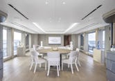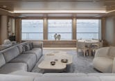 ENTOURAGE is a 2023 Amels 60 Limited Editions hybrid superyacht offered for sale through Moran Yacht & Ship as sole central agents. Moran’s new construction team negotiated and oversaw the project from contract through delivery, working with Amels and the owner to specify a scope of custom modifications to the platform, including an expanded sundeck, a full-beam owner’s suite with a private fold-down balcony, enhanced wellness spaces with a dedicated steam room, and numerous technical upgrades. Amels subsequently adopted several of these changes into their later 60m builds. Exterior styling by Espen Øino delivers clean, modern lines with added deck volume where it matters. Interior design by Burdifilek takes a residential approach with warm materials, restrained detailing, and oversized salon windows that fill the living spaces with natural light. Six staterooms accommodate 12 guests, supported by a crew of 14.